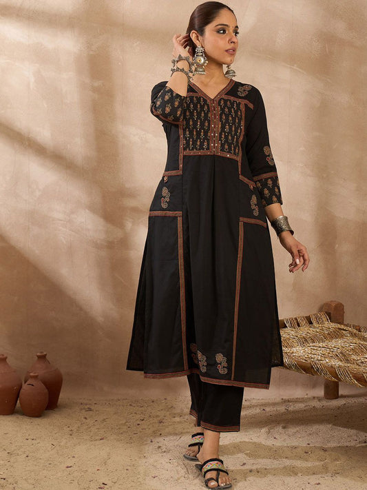Dhiyona IE Women Floral Printed Pure Cotton A-Line Kurta with Trousers