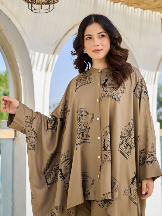 Dhiyona IE Women Ethnic Motifs Printed Band Collar Kaftan Kurta With Trouser