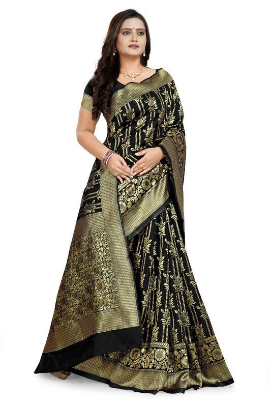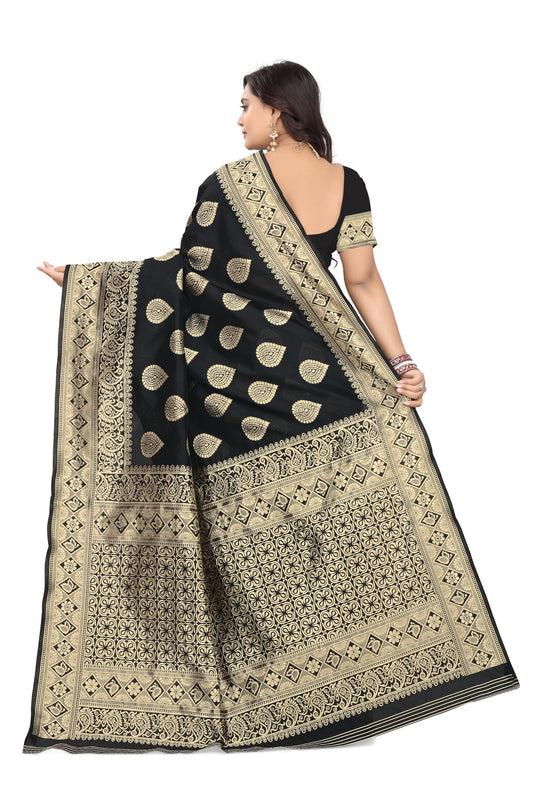 Dhiyona GR Women's Ghazal Classic Couture Black Cotton Jamdani Saree