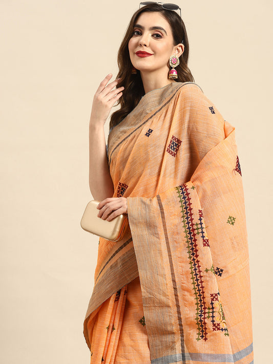 Dhiyona RV Women's Graceful Linen Cotton Saree with Elegant Thread Embroidery With Blouse ( KVD1916 )