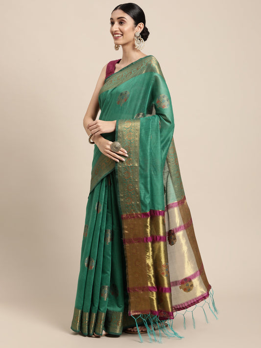 Dhiyona GR Women's Vaibhavi Seafoam Green Cotton Blend Saree