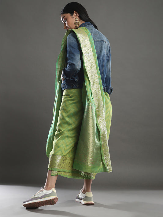 Dhiyona GR Women's Avika Green Cotton Ikat Silk Saree