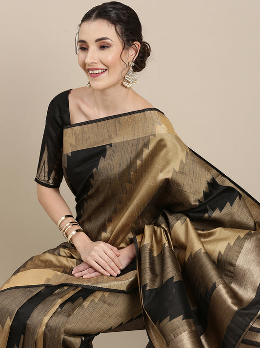 Women's Cotton Silk Black Woven Design Designer Saree With Blouse Piece