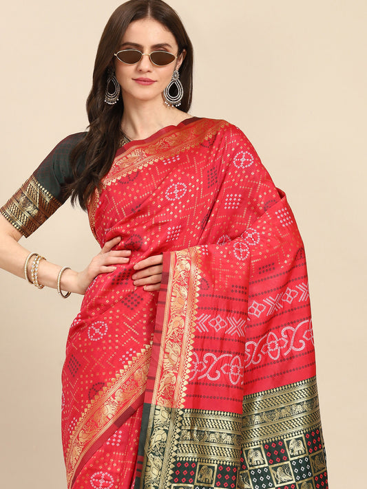 Dhiyona RV Women's Banarasi Cotton Silk With Zari weaving Bandhani Saree ( KVD1260 )