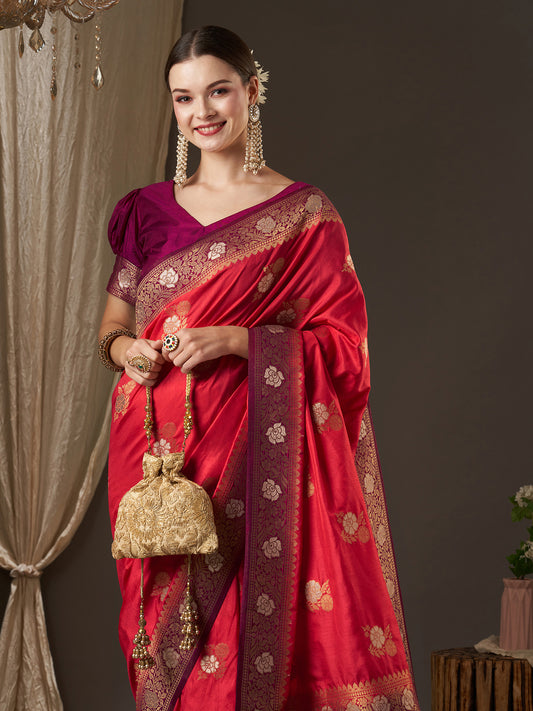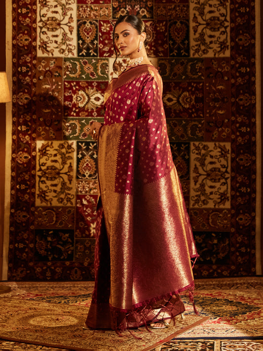 Women's Silk Blend Maroon Woven Design Designer Saree With Blouse Piece
