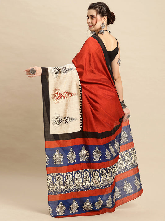 Women's Bhagalpuri Silk Rust Printed Designer Saree With Blouse Piece