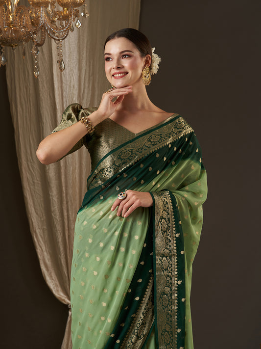 Women's Georgette Light Green Woven Design Designer Saree With Blouse Piece