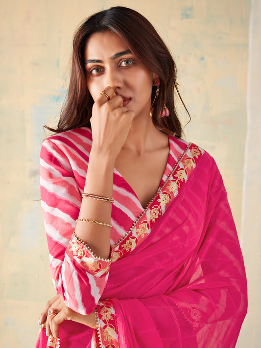 Women's Organza Pink Printed Designer Saree With Blouse Piece