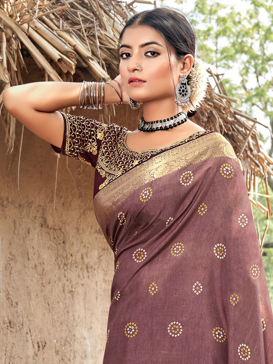 Women's Tussar Silk Brown Woven Design Designer Saree With Blouse Piece