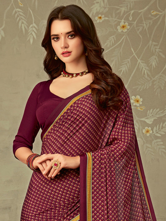 Women's Crepe Magenta Printed Designer Saree With Blouse Piece