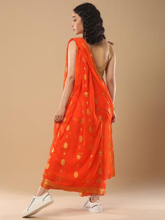 Women's Nylon Orange Solid Designer Saree With Blouse Piece