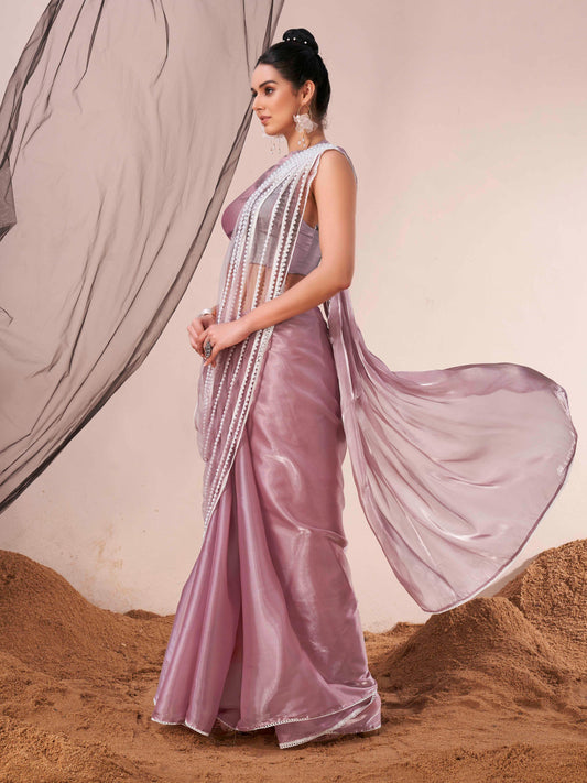 Women's Satin Silk Mauve Embellished Designer Saree With Blouse Piece