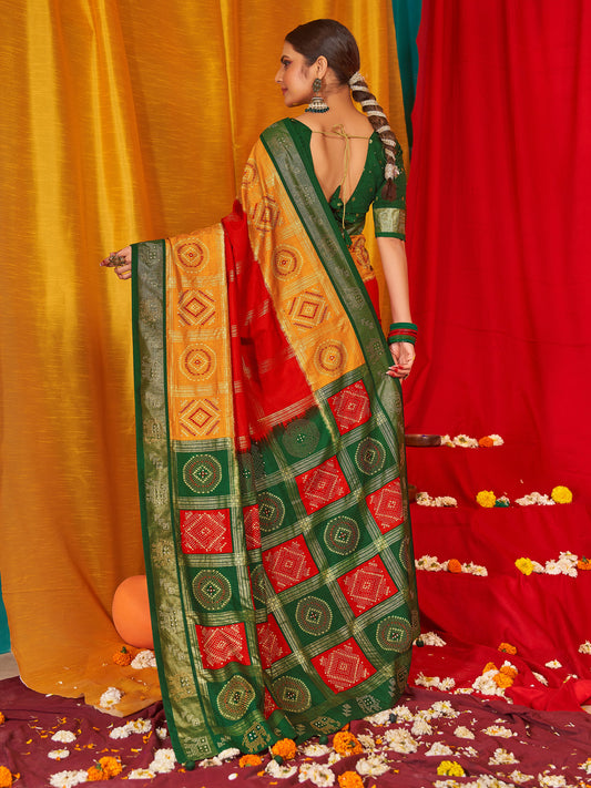Women's Tussar Silk Red Woven Design Designer Saree With Blouse Piece