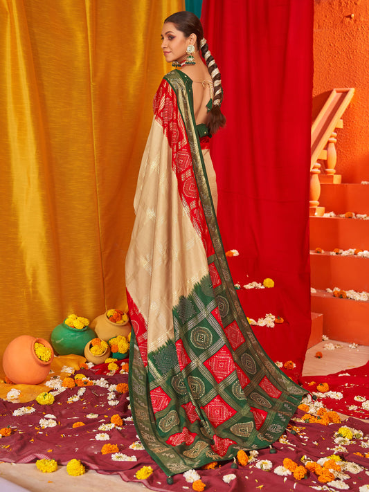 Women's Satin Silk Red Woven Design Designer Saree With Blouse Piece