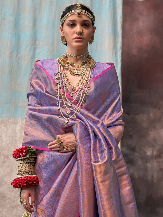 Women's Silk Blend Lavendar Woven Design Designer Saree With Blouse Piece