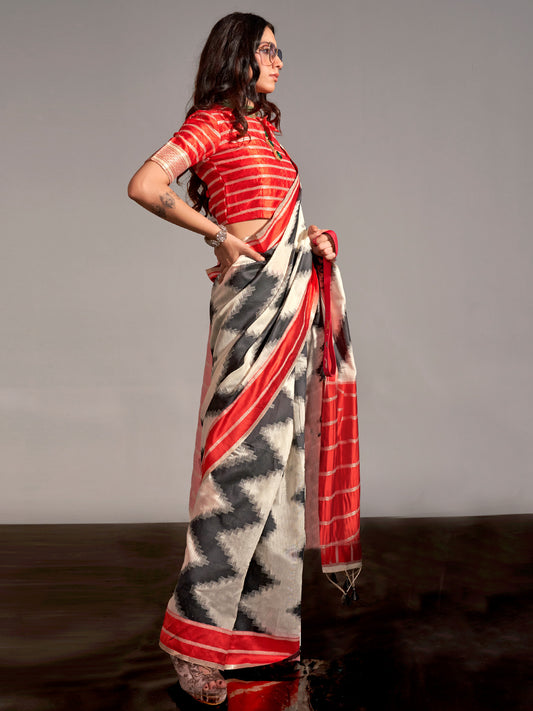 Women's Silk Blend Cream Woven Design Designer Saree With Blouse Piece