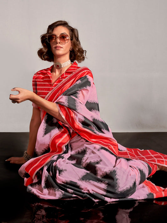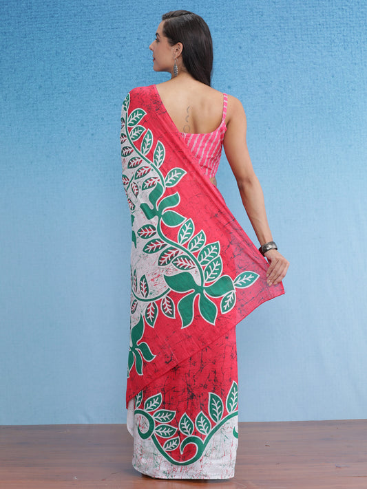 Women's Cotton Pink Printed Designer Saree With Blouse Piece