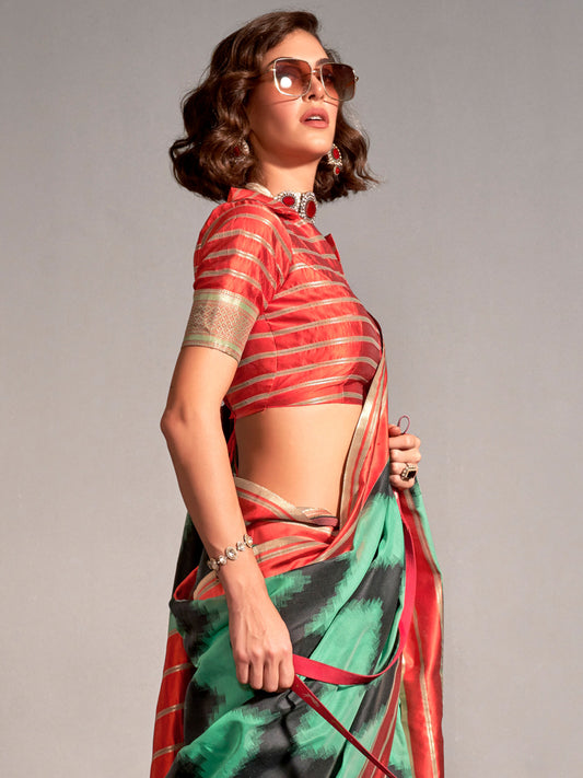 Women's Silk Blend Sea Green Woven Design Designer Saree With Blouse Piece