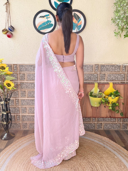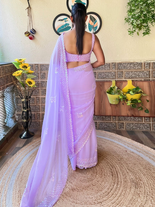 Women's Georgette Lavendar Embellished Designer Saree With Blouse Piece