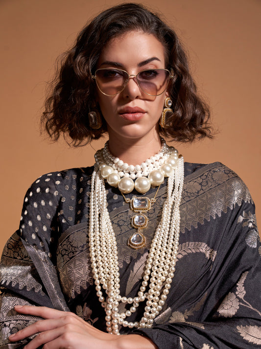 Women's Silk Blend Black Woven Design Designer Saree With Blouse Piece
