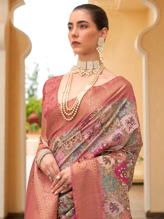Women's Organza Mauve Printed Designer Saree With Blouse Piece