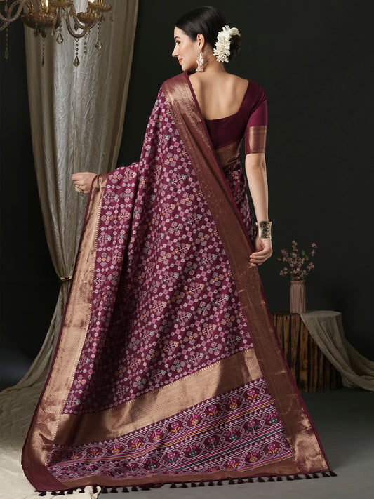 Women's Silk Blend Magenta Printed Designer Saree With Blouse Piece