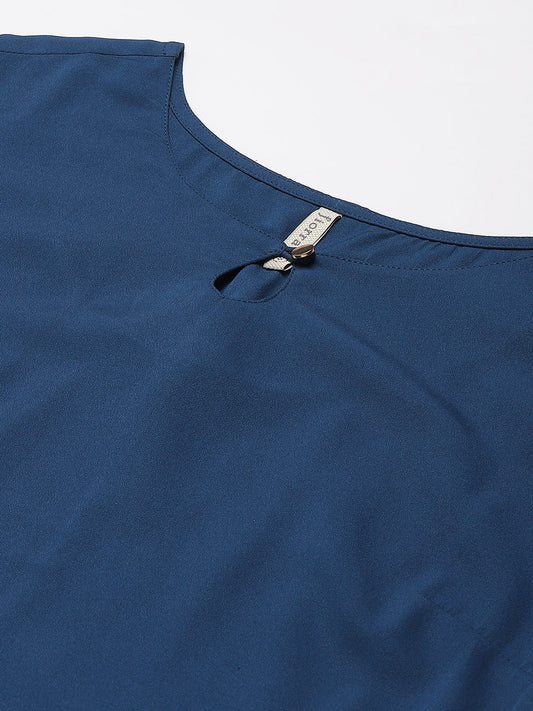 Women's Teal Blue Poly Crepe A-line Kurta with Pant