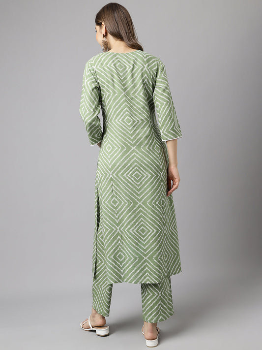Women's Mehndi Green Crepe Straight Kurta and Palazzo With Dupatta