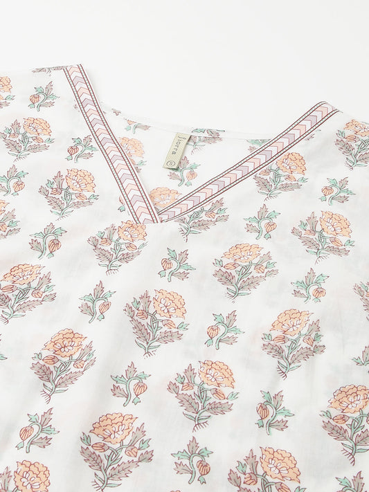Women's White Cotton Straight Kurta and Pant With Dupatta
