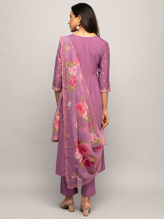 Women's Lavender Crepe Flared Kurta and Pant With Dupatta