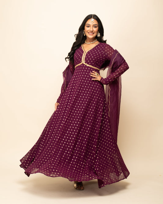 Women's Maroon Poly Crepe A-Line Kurta Set With Dupatta