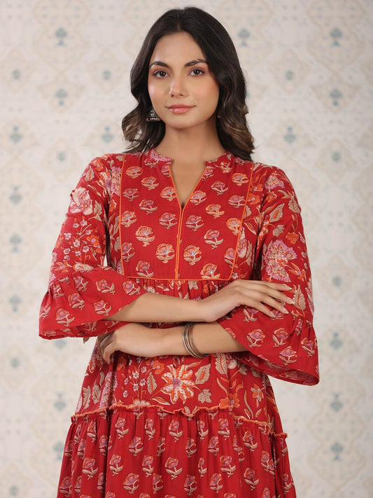 Dhiyona OD Ethnic Motifs Printed Cotton Tiering Kurta