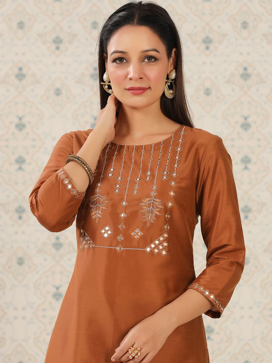 Dhiyona OD Geometric Embroidered Mirror Work Kurta With Trousers