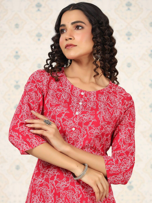 Dhiyona OD Floral Printed Pure Cotton Straight Kurti with Sharara & Dupatta