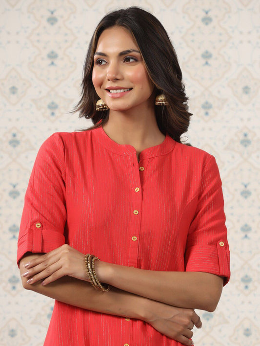 Dhiyona OD Striped Mandarin Collar Roll Up Sleeves Kurta with Palazzos
