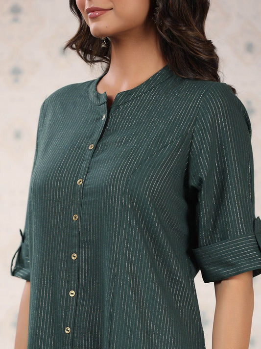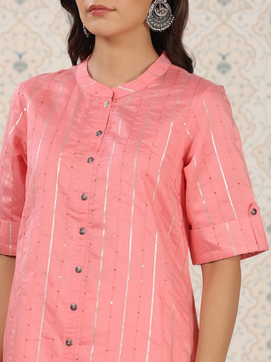 Dhiyona OD Striped Roll Up Sleeves Pure Cotton Kurta