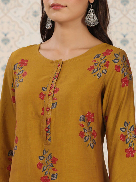 Dhiyona OD Floral Printed Zari Detailed Straight Kurta