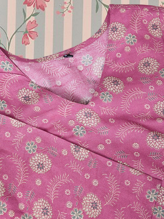 Dhiyona OD Floral Printed Regular Pure Cotton Kurta with Trousers