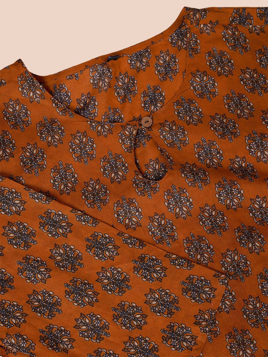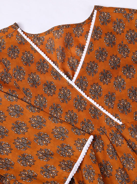 Dhiyona OD Floral Printed Angrakha Pure Cotton Kurta with Trousers