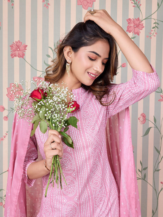 Dhiyona OD Bandhani Printed Pure Cotton Kurta with Trousers & Dupatta