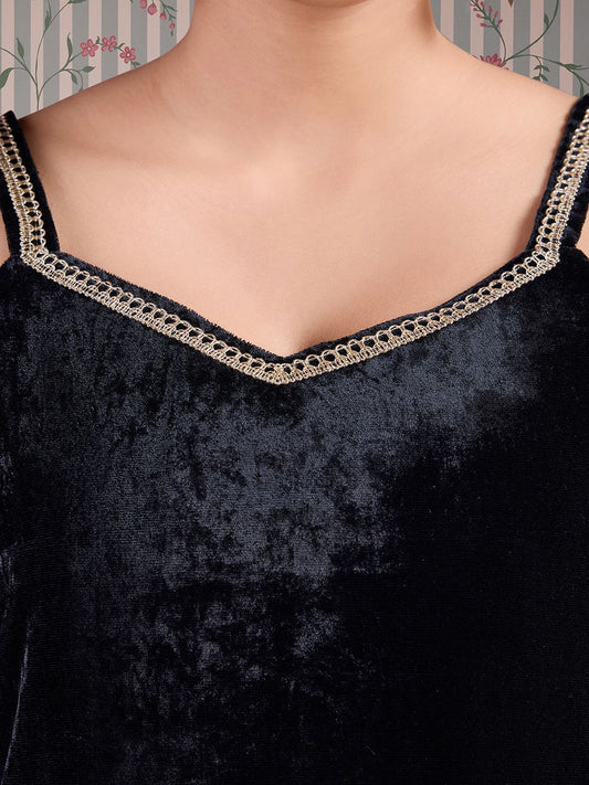 Dhiyona OD V Neck Gotta Patti Velvet Straight Kurta with Trousers & Dupatta