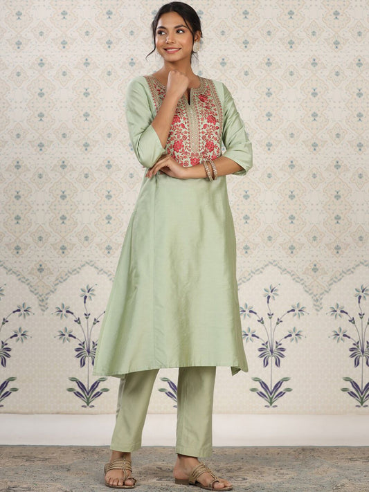Dhiyona OD Yoke Design Embroidered Kurta with Trousers