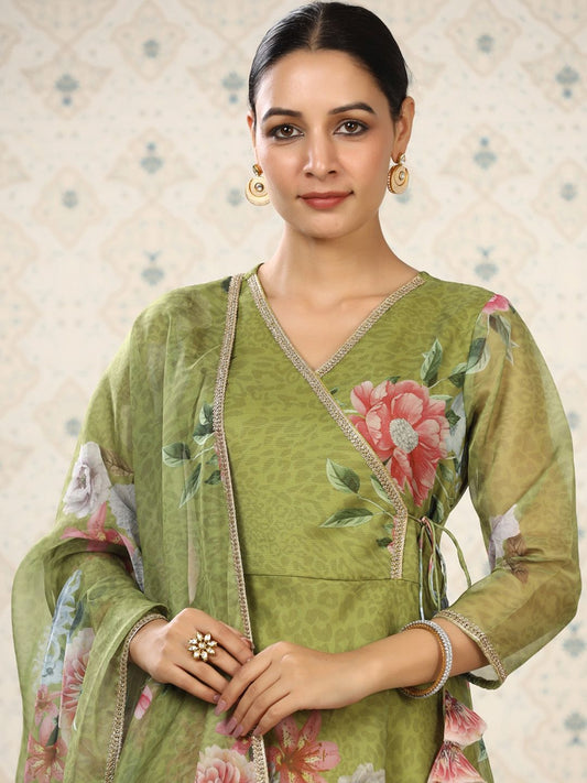 Dhiyona OD Floral Printed Angrakha Kurta With Trousers & Dupatta