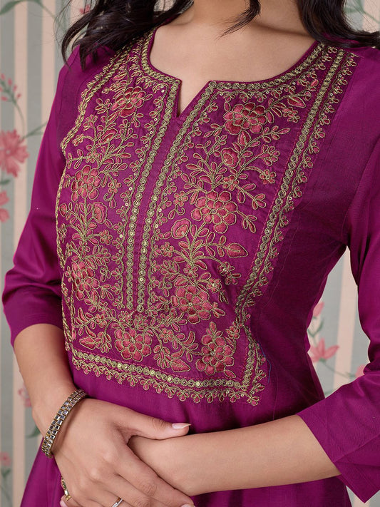 Dhiyona OD Floral Embroidered Yoke Sequined Straight Kurta with Trousers