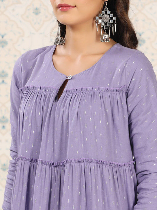 Dhiyona OD Keyhole Neck A-Line Tiered Woven Design Pure Cotton Kurta Set