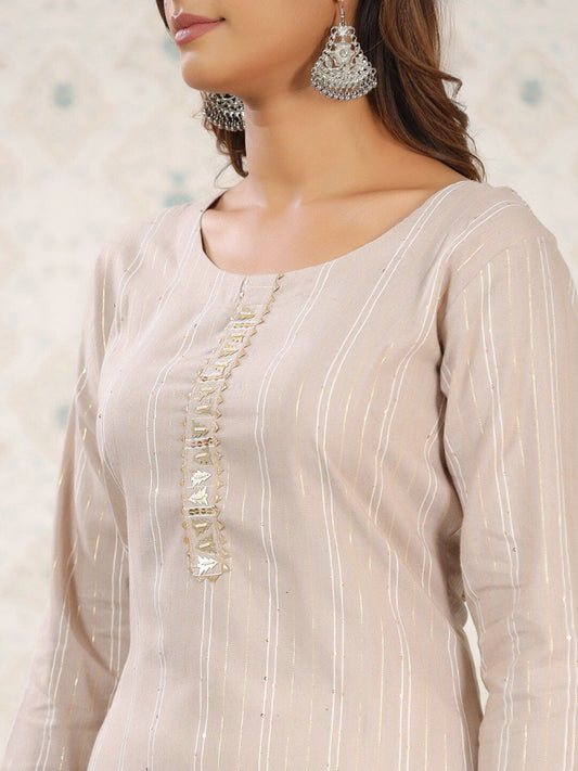 Dhiyona OD Embroidered Gota Patti Straight Kurta With Trousers & Dupatta