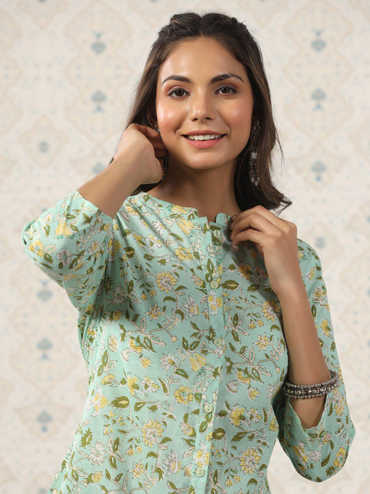 Dhiyona OD Floral Printed Band Collar Pure Cotton Kurta