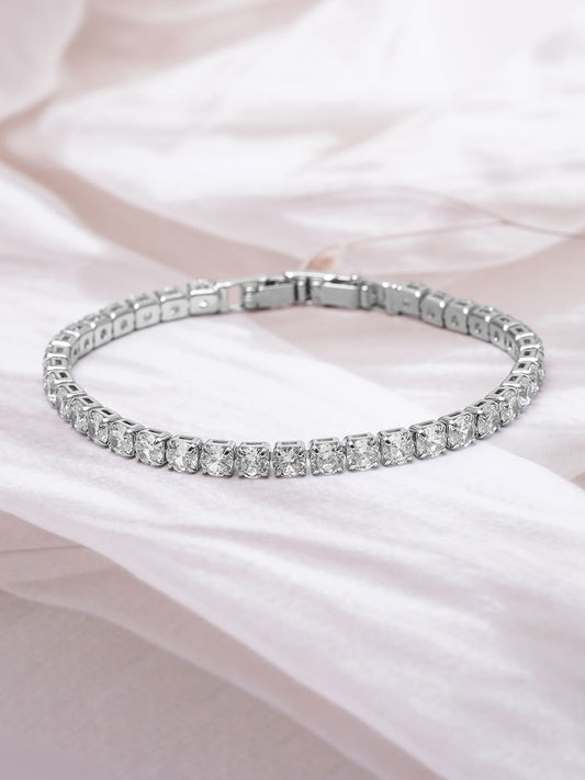 Dhiyona RJ Women's Rhodium Plated Sparkling AD & Cubic Zirconia Studded Tennis Bracelet
