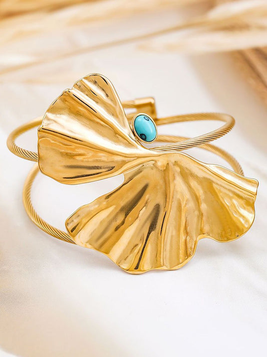 Dhiyona RJ Women's 22K Gold-Plated Free Size Leaf Design Cuff Bracelet with Turquoise Accent