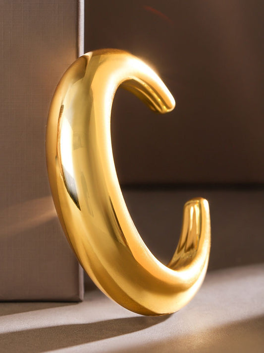 Dhiyona RJ Women's 18K Gold Plated Sculptural Cuff Bangle Modern Bold Bracelet